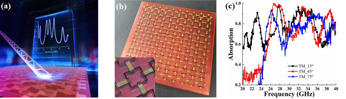 超材料是一种人工设计的复合结构,具有很多自然材料不具备的超常特性,在电磁波的调控领域具有重要的研究价值。目前对于超材料的研究多以平面结构超材料为主,在工作带宽以及对宽角入射波的响应等方面仍具有诸多不足。研究团队利用三维谐振结构来构建超材料,有效地增大了电磁波调控的带宽,并实现了良好的宽角入射波的动态响应。此外,团队利用异质材料同步打印技术,完成了三维超材料结构的制备。该类结构在雷达成像以及电磁屏蔽等领域具有潜在的应用价值。